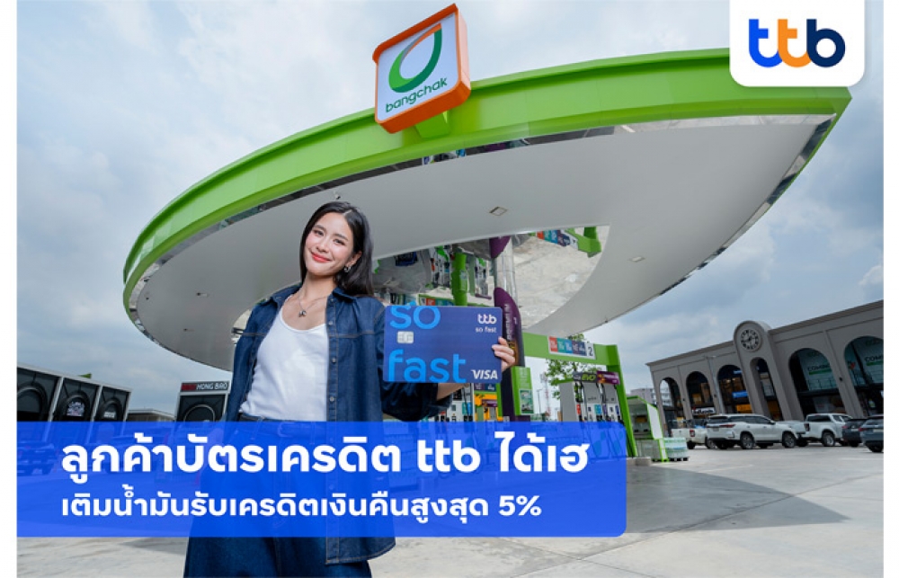 บัตรเครดิต ttb มอบเครดิตเงินคืนสูงสุด 5% เมื่อเติมน้ำมันที่ปั๊มบางจาก