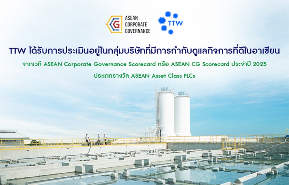 นิวส์ คอนเน็คท์ - บริษัท ทีทีดับบลิว จำกัด (มหาชน) หรือ TTW โชว์ศักยภาพการดำเนินงานด้าน Corporate Governance (CG) คว้ารางวัลชั้นนำระดับภูมิภาคอาเซียน “ASEAN Asset Class PLCs” ภายใต้โครงการ ASEAN Corporate Governance Scorecard ซึ่งได้รับการสนับสนุนจาก ASEAN Capital Markets Forum (ACMF) และธนาคารพัฒนาเอเชีย (ADB) โดยรางวัลดังกล่าวมอบให้กับบริษัทจดทะเบียนในภูมิภาคอาเซียนที่ได้รับคะแนนประเมินการกำกับดูแลกิจการที่ดีตั้งแต่ 97.50 คะแนนขึ้นไป ซึ่งเกณฑ์การประเมิน ASEAN Corporate Governance Scorecard ได้พัฒนาให้สอดคล้องตามหลักการกำกับดูแลกิจการระดับสากลขององค์การเพื่อความร่วมมือทางเศรษฐกิจและการพัฒนา (Organization for Economic Cooperation and Development หรือ OECD) เพื่อส่งเสริมและยกระดับการกำกับดูแลกิจการที่ดีแก่บริษัทจดทะเบียน