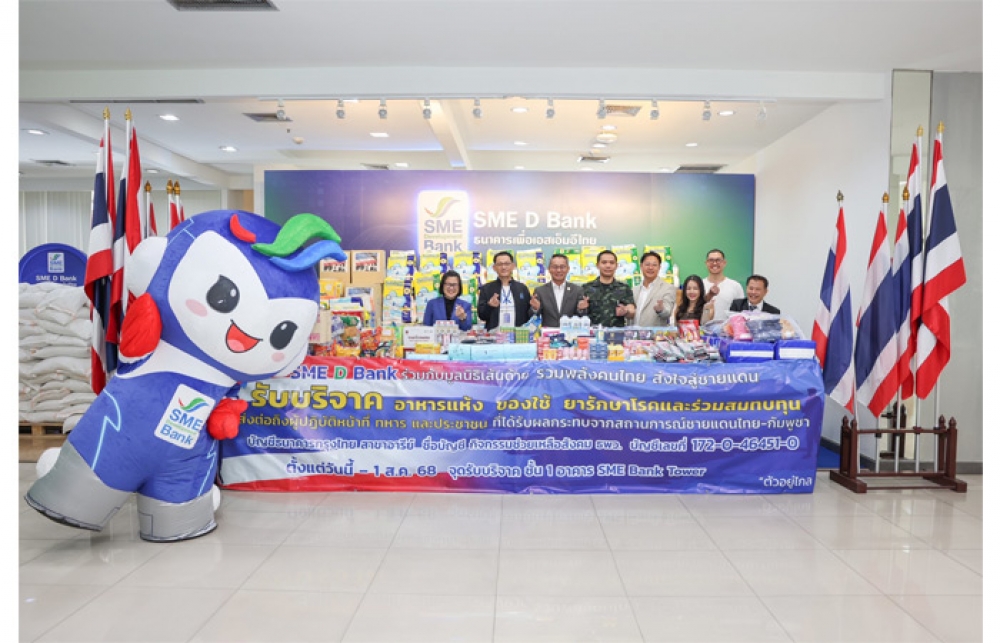 นิวส์ คอนเน็คท์ - นายพิชิต มิทราวงศ์ กรรมการผู้จัดการ ธนาคารพัฒนาวิสาหกิจขนาดกลางและขนาดย่อมแห่งประเทศไทย (ธพว.) หรือ SME D Bank พร้อมด้วยผู้บริหารและเจ้าหน้าที่ ร่วมส่งมอบอาหารแห้ง ของใช้ ยารักษาโรค และสิ่งของจำเป็นต่าง ๆ ที่ได้รับบริจาคจากผู้บริหาร เจ้าหน้าที่ธนาคาร หน่วยงานพันธมิตร ลูกค้าธนาคาร ผู้ประกอบการเอสเอ็มอี และประชาชน ผ่านกิจกรรม “รวมพลังคนไทย ส่งใจสู่ชายแดน” ซึ่ง SME D Bank จับมือกับมูลนิธิเส้นด้าย เพื่อนำไปมอบให้แก่ประชาชน ทหาร และผู้ปฏิบัติหน้าที่ ในพื้นที่สถานการณ์ความไม่สงบจากเหตุปะทะตามแนวพื้นที่ชายแดนไทย-กัมพูชา ช่วยบรรเทาความเดือดร้อนและนำไปใช้ในชีวิตประจำวัน โดยมี พ.อ.ณัฐพงษ์ ลมสูงเนิน ผู้อำนวยการกองสารสนเทศ กรมกิจการพลเรือนทหารบก เป็นผู้แทนรับมอบ ในโอกาสเดียวกันนี้ นายพีรพล กนกวลัย สมาชิกสภากรุงเทพมหานคร เขตพญาไท และนายคริส โปตระนันทน์ ประธานมูลนิธิเส้นด้าย ได้ร่วมส่งมอบด้วย ณ บริเวณชั้น 1 สำนักงานใหญ่ SME D Bank อาคาร SME Bank Tower เมื่อวันที่ 6 ส.ค.68