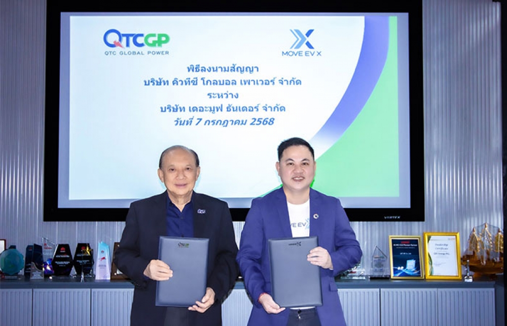 เมื่อวันที่ 13 สิงหาคม 2568 นายพูลพิพัฒน์ ตันธนสิน ประธานเจ้าหน้าที่บริหาร บริษัท คิวทีซี เอนเนอร์ยี่ จำกัด (มหาชน) หรือ QTC ผู้ผลิตและจำหน่ายหม้อแปลงไฟฟ้าตามคำสั่งซื้อของลูกค้า (Made to Order) เปิดเผยว่า บริษัทยังคงเดินหน้าต่อยอดธุรกิจพลังงานสะอาดอย่างต่อเนื่อง เพื่อมุ่งสู่การพัฒนาอย่างยั่งยืน โดยล่าสุด บริษัท คิวทีซี โกลบอล เพาเวอร์ จำกัด (QTCGP) ซึ่งเป็นบริษัทย่อย ประกอบธุรกิจด้านการผลิตและจำหน่ายไฟฟ้าพลังงานทดแทนหรือพลังงานสะอาด ได้ร่วมลงนามบันทึกข้อตกลงกับ นายวันชัย ลี้นะวัฒนา ประธานเจ้าหน้าที่บริหาร บริษัท เดอะมูฟ ธันเดอร์ จำกัด (MOVE EV X) เพื่อขยายการลงทุนเปิดสถานีเปลี่ยนแบตเตอรี่มอเตอร์ไซค์ไฟฟ้าเพิ่มอีก 7 สถานี หลังจากประสบความสำเร็จจากการเปิดให้บริการ 7 สถานีในช่วงต้นปีที่ผ่านมา ทั้งนี้ หากดำเนินการแล้วเสร็จ จะส่งผลให้บริษัทฯ มีสถานีเปลี่ยนแบตฯ มอเตอร์ไซค์ EV ทั้งสิ้น 14 สถานี