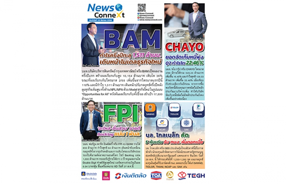 BAM กำไรครึ่งปีทะลุ 1,511 ล้านบ. - CHAYO ยอดจัดเก็บหนี้พุ่ง Q2 กำไรโต 22.46%