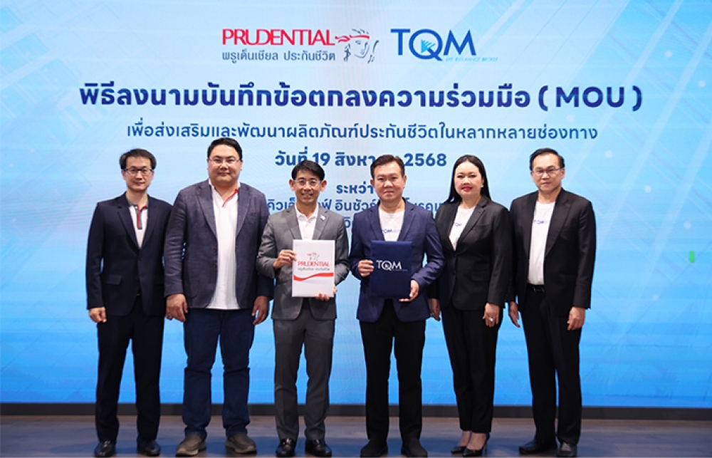 เมื่อวันที่ 20 สิงหาคม 2568 ดร.นภัสนันท์ พรรณนิภา ประธานเจ้าหน้าที่บริหาร บริษัท ทีคิวเอ็ม อัลฟา จำกัด (มหาชน) หรือ TQM เปิดเผยว่า TQM เดินหน้าขยายธุรกิจประกันชีวิตผ่านบริษัทในเครือ คือ บริษัท ทีคิวเอ็ม ไลฟ์ อินชัวร์รันส์ โบรคเกอร์ จำกัด หรือ TQM Life โดยจับมือ บริษัท พรูเด็นเชียล ประกันชีวิต (ประเทศไทย) จำกัด (มหาชน) หรือ พรูเด็นเชียล ประเทศไทย โดยความร่วมมือครั้งนี้ มีเป้าหมายเพื่อขยายตลาดประกันชีวิตอย่างเต็มรูปแบบ มุ่งสร้างการเติบโตร่วมกันอย่างยั่งยืน พร้อมส่งมอบบริการ และความคุ้มครองที่เข้าใจง่าย ตอบโจทย์ความต้องการของผู้บริโภคในทุกช่วงชีวิต