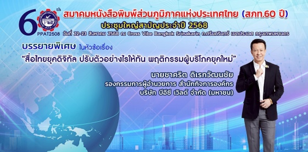 สมาคมหนังสือพิมพ์ส่วนภูมิภาคแห่งประเทศไทย (สภท.) ได้เปิดดำเนินการมาจนครบปีที่ 60 โดยการบริหารงานของนายอนันต์ นิลมานนท์ นายกสมาคมหนังสือพิมพ์ส่วนภูมิภาคประเทศไทย (สภท.60ปี) พร้อมทั้งคณะกรรมการบริหารสมาคมฯ ร่วมกันจัดประชุมใหญ่สามัญประจำปี 2568 เนื่องในโอกาสครบรอบ 60 ปี ซึ่งในปีนี้ ทางสมาคมฯ ได้เรียนเชิญ ฯพณฯ วันมูหะมัดนอร์ มะทา ประธานสภาผู้แทนราษฎร และประธานรัฐสภา พร้อมด้วย นายฉลาด ขามช่วง รองประธานสภาผู้แทนราษฎร คนที่สอง ให้เกียรติมาเป็นประธานกล่าวเปิดงาน ระหว่างวันที่ 22-23 สิงหาคม 2568 ณ Cross Vibe Bangkok Srinakarin (โรงแรมคิงปาร์ค อเวนิว) ถนนศรีนครินทร์ ซอย 40 เขตประเวศ กรุงเทพฯ โดยมีสมาชิกสมาคมฯ สื่อมวลชน และแขกผู้มีเกียรติ เข้าร่วมงานกันอย่างคับคั่ง