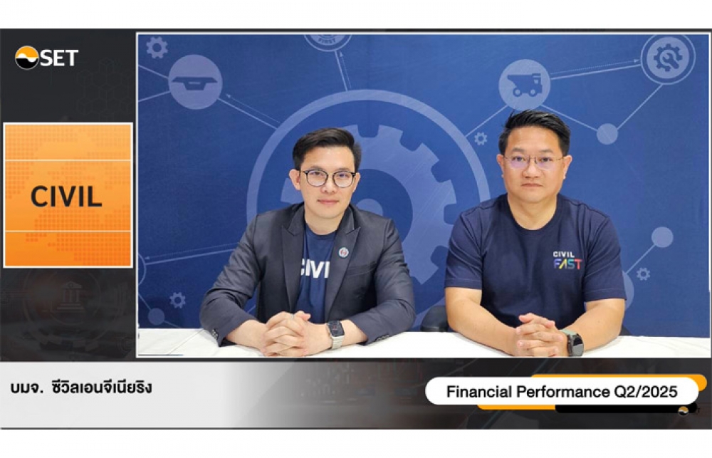 นิวส์ คอนเน็คท์ - นายปิยะดิษฐ์ อัศวศิริสุข (ขวา) ประธานเจ้าหน้าที่บริหาร และนายวสุ โรจนทรัพย์สกุล (ซ้าย) ประธานเจ้าหน้าที่สายงานบัญชีและการเงิน บริษัท ซีวิลเอนจีเนียริง จำกัด (มหาชน) หรือ CIVIL ให้ข้อมูลสรุปผลประกอบการครึ่งปีแรก 2568 รายได้รวม 2,244 ล้านบาท กำไรสุทธิ 22 ล้านบาท พร้อมทิศทางธุรกิจครึ่งปีหลัง 2568 คว้างานใหม่มูลค่า 3,178 ล้านบาท ตุนแบ็คล็อก 13,100 ล้านบาท เร่งประมูลงานเพิ่ม พร้อมคุมต้นทุน รักษาอัตรากำไรเสริมความแข็งแกร่ง ในงานบริษัทจดทะเบียนพบผู้ลงทุน (Opportunity Day) จัดโดยตลาดหลักทรัพย์แห่งประเทศไทย สามารถรับชมบันทึกเทปได้ที่