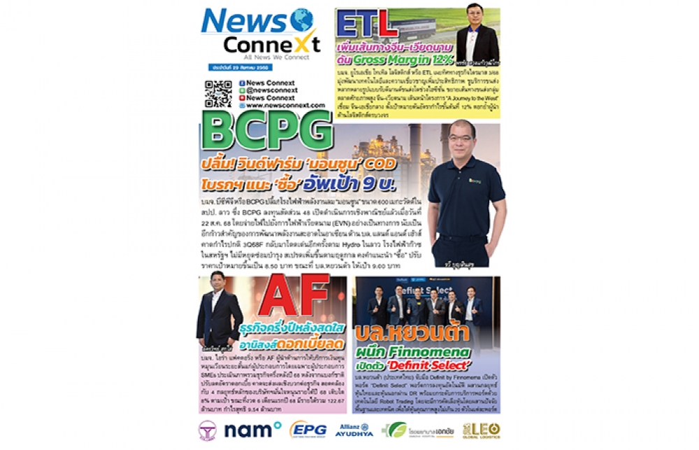 บมจ. บีซีพีจี หรือ BCPG ปลื้ม! โรงไฟฟ้าพลังงานลม “มอนซูน” ขนาด 600 เมกะวัตต์ ใน สปป. ลาว ซึ่ง BCPG ลงทุนสัดส่วน 48 เปิดดำเนินการเชิงพาณิชย์แล้วเมื่อวันที่ 22 ส.ค. 68 โดยจ่ายไฟไปยังการไฟฟ้าเวียดนาม (EVN) อย่างเป็นทางการ นับเป็นอีกก้าวสำคัญของการพัฒนาพลังงานสะอาดในอาเซียน ด้าน บล. แลนด์ แอนด์ เฮ้าส์ คาดกำไรปกติ 3Q68F กลับมาโดดเด่นอีกครั้งตาม Hydro ในลาว โรงไฟฟ้าก๊าซในสหรัฐฯ ไม่มีหยุดซ่อมบำรุง สเปรดเพิ่มขึ้นตามฤดูกาล คงคำแนะนำ “ซื้อ” ปรับราคาเป้าหมายขึ้นเป็น 8.50 บาท ขณะที่ บล.หยวนต้า ให้เป้า 9.00 บาท