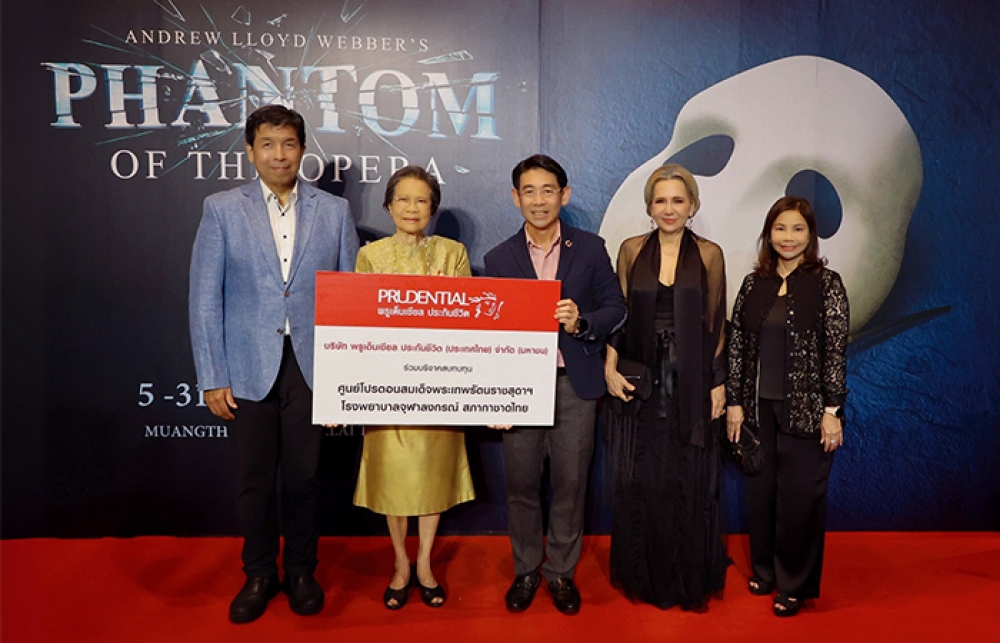 นายบัณฑิต เจียมอนุกูลกิจ ประธานเจ้าหน้าที่บริหาร พรูเด็นเชียล ประเทศไทย (กลาง) มอบเงินบริจาคให้สภากาชาดไทย โดยมี คุณหญิงชฎา วัฒนศิริธรรม เหรัญญิกสภากาชาดไทย (ที่2 จากซ้าย) เป็นผู้รับมอบ โดย พรูเด็นเชียล ประเทศไทย ร่วมเป็นหนึ่งในองค์กรพันธมิตรภาคเอกชนที่สนับสนุนงาน “Phantom of the Opera Charity Night” ณ โรงละครเมืองไทยรัชดาลัย ซึ่งจัดขึ้นโดย เดอะมอลล์ กรุ๊ป เมื่อวันเสาร์ที่ผ่านมา เพื่อสมทบทุนแก่ศูนย์โปรตอนสมเด็จพระเทพรัตนราชสุดาฯ สยามบรมราชกุมารี โรงพยาบาลจุฬาลงกรณ์ สภากาชาดไทย ซึ่งสะท้อนถึงความร่วมมือของภาคเอกชนเกี่ยวกับการดำเนินโครงการเพื่อสังคมเพื่อยกระดับการรักษาโรคมะเร็งด้วยเทคโนโลยีโปรตอน ซึ่งเป็นนวัตกรรมล้ำสมัยแห่งแรกในภูมิภาคเอเชียตะวันออกเฉียงใต้ และช่วยขยายโอกาสให้ประชาชนเข้าถึงการรักษาระดับโลกได้มากขึ้น