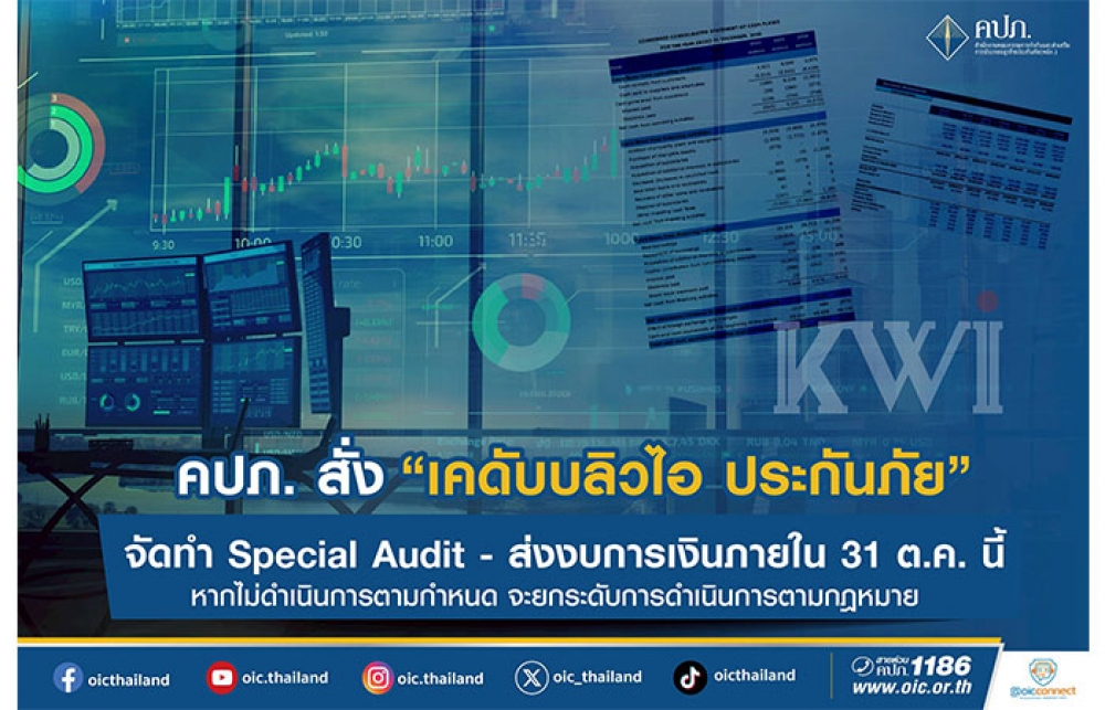 คปภ. สั่ง KWI จัดทำ Special Audit - ส่งงบภายใน 31 ต.ค. นี้