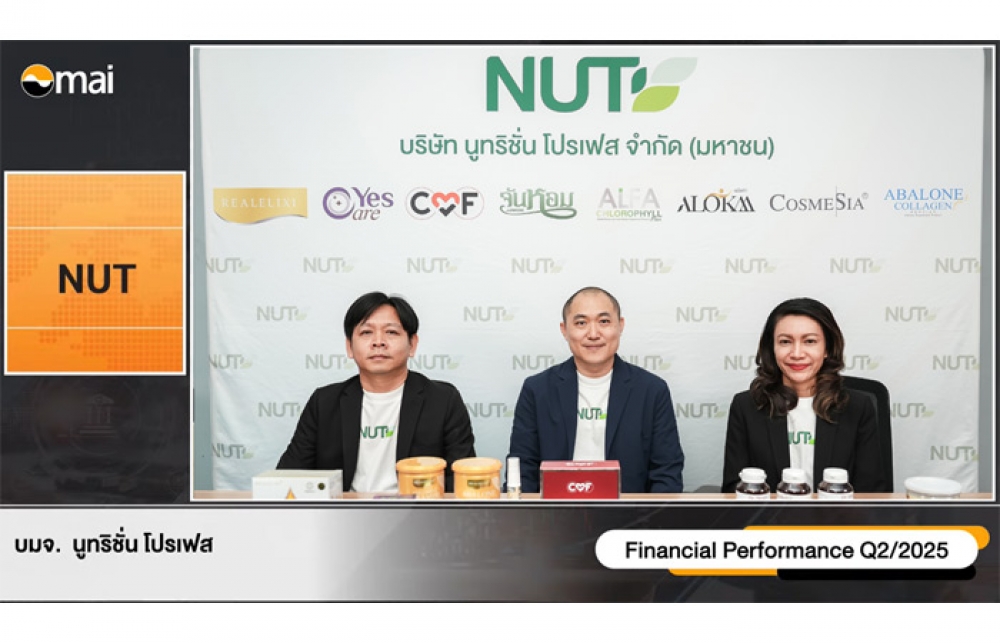 นิวส์ คอนเน็คท์ - นายพุทธิวัฒน์ กิตติภานุวัฒน์ (กลาง) รองประธานเจ้าหน้าที่บริหาร พร้อมด้วย นางสาวศิริพร ฉุดพิมาย (ขวา) ประธานเจ้าหน้าที่ฝ่ายการเงิน และ นายวสุพล ใจเกี๋ยง (ซ้าย) ผู้อำนวยการฝ่ายเทคโนโลยีสารสนเทศ บริษัท นูทริชั่น โปรเฟส จำกัด (มหาชน) หรือ NUT ร่วมกิจกรรมบริษัทจดทะเบียนพบนักลงทุน Opportunity Day ไตรมาส 2/2568 โดยให้ข้อมูลผลการดำเนินงานในช่วงครึ่งปีแรก 2568 มีรายได้จากการขายรวม 529.45 ล้านบาท กำไรสุทธิ 43.71 ล้านบาท และ ทิศทางการดำเนินงานช่วงครึ่งปีหลัง 2568 เดินหน้าพัฒนาผลิตภัณฑ์ เสริมความแข็งแกร่งด้านอีคอมเมิร์ซ เตรียมดันโครงการ “NUT Voice” ยกระดับการสื่อสารและบริการ ด้วยการใช้ฐานข้อมูลระดับ Big Data เพื่อเพิ่มฐานลูกค้ากลุ่มซื้อประจำและสร้างการเติบโตระยะยาว