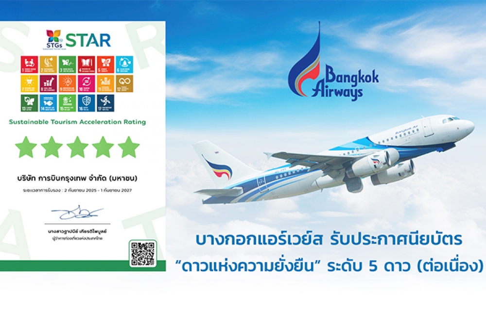 BA คว้า “ดาวแห่งความยั่งยืน” ระดับ 5 ดาว จากททท. ต่อเนื่อง