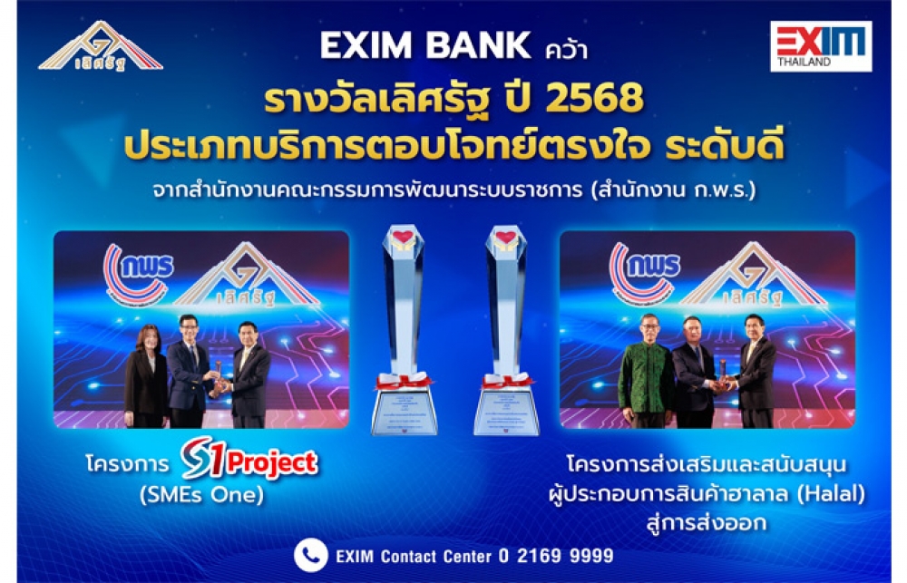 EXIM BANK คว้า 2 รางวัลเลิศรัฐ ปี 2568 ประเภทบริการตอบโจทย์ตรงใจ