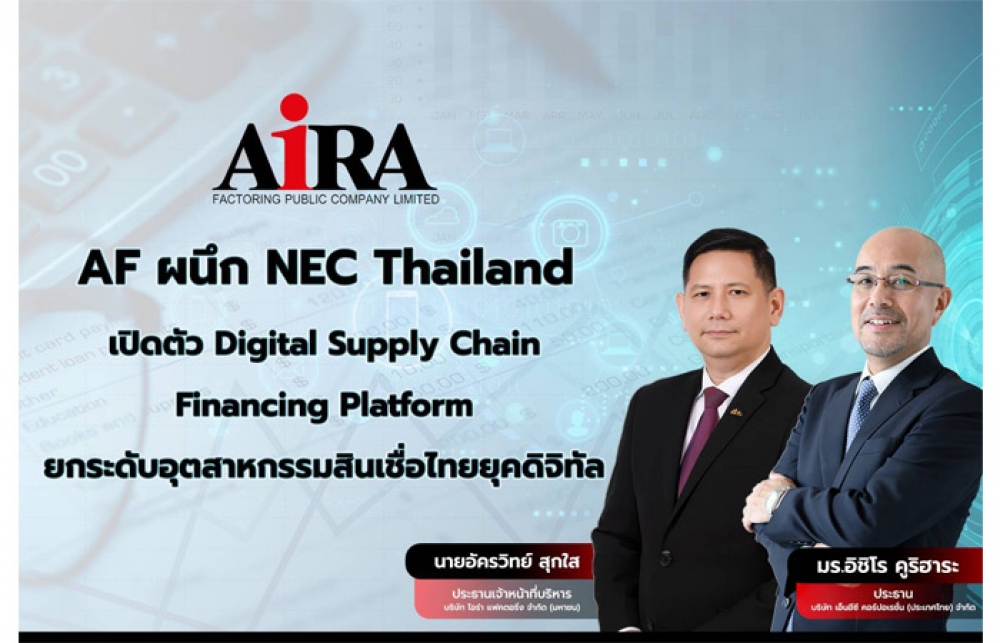เมื่อวันที่ 22 กันยายน 2568 นายอัครวิทย์ สุกใส ประธานเจ้าหน้าที่บริหาร บริษัท ไอร่า แฟคตอริ่ง จำกัด (มหาชน) หรือ AF ผู้นำด้านการให้บริการเงินทุนหมุนเวียนระยะสั้นแก่ผู้ประกอบการโดยเฉพาะผู้ประกอบการ SMEs เปิดเผยว่า บริษัทได้ร่วมมือกับ บริษัท เอ็นอีซี คอร์ปอเรชั่น (ประเทศไทย) จำกัด (NEC Thailand) เปิดตัวแพลตฟอร์ม ดิจิทัลซัพพลายเชนไฟแนนซ์ (Digital Supply Chain Financing Platform) อย่างเป็นทางการ โดยแพลตฟอร์มดังกล่าว เป็นการให้บริการผ่าน “TASConnect” ซึ่งพัฒนาโดย SCV Research and Development PTE. LTD. ควบคู่กับเทคโนโลยีดิจิทัลที่ทันสมัยจาก NEC