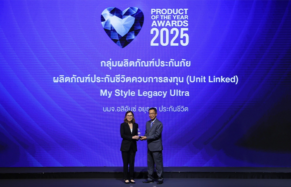 นางสาวพบพร พิพัฒน์สาธุกิจ ผู้อำนวยการอาวุโส ฝ่ายธุรกิจยูนิต ลิงค์ บมจ. อลิอันซ์ อยุธยา ประกันชีวิต รับรางวัล BUSINESS+ PRODUCT OF THE YEAR AWARDS 2025 กลุ่มผลิตภัณฑ์ประกันภัย ประเภทประกันชีวิตควบการลงทุน (Unit Linked) My Style Legacy ULTRA ที่ออกแบบเฉพาะเพื่อตอบโจทย์กลุ่มลูกค้าไฮเน็ตเวิร์ธ วางแผนการส่งต่อความมั่งคั่งและความมั่นคงให้คนที่รักอย่างมีประสิทธิภาพ ความคุ้มครองชีวิตเริ่มต้นที่ 10 ล้านบาท และสามารถเพิ่มโอกาสรับผลตอบแทนสูงขึ้นผ่านการ Top-Up วางแผนได้ตามเป้าหมาย มีความยืดหยุ่นในปรับเพิ่มลดความคุ้มครองชีวิต เป็นอีกหนึ่งแผนประกันจาก Ultra series ที่ได้รับเสียงตอบรับที่ดีอย่างมาก โดยได้รับเกียรติจาก ฯพณฯ นุรักษ์ มาประณีต องคมนตรี เป็นประธานมอบรางวัล ณ ห้องบอลรูม โรงแรมสวิสโฮเต็ล กรุงเทพฯ รัชดา