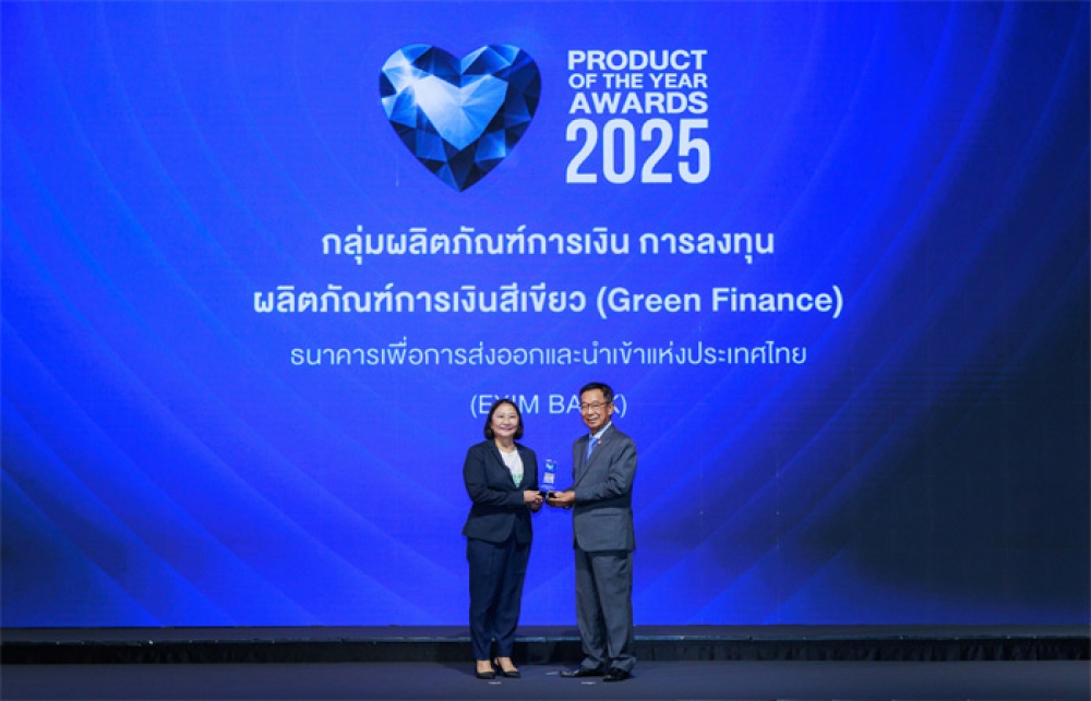 นิวส์ คอนเน็คท์ - นางสาวดรัสวันต์ ชูวงษ์ ผู้ช่วยกรรมการผู้จัดการ ธนาคารเพื่อการส่งออกและนำเข้าแห่งประเทศไทย (EXIM BANK) รับรางวัลสุดยอดสินค้าและบริการแห่งปี กลุ่มการเงิน-การลงทุน ประเภทผลิตภัณฑ์การเงินสีเขียวจากนายนุรักษ์ มาประณีต องคมนตรี ในงาน BUSINESS+ Product of the Year Awards 2025 จัดโดยนิตยสาร Business+ ร่วมกับวิทยาลัยการจัดการ มหาวิทยาลัยมหิดล ณ โรงแรมสวิสโฮเต็ล กรุงเทพฯ เมื่อวันที่ 25 กันยายน 2568 โดย EXIM BANK มุ่งพัฒนาผลิตภัณฑ์ทางการเงินสีเขียว เพื่อช่วยผู้ประกอบการไทยปรับตัวและเพิ่มขีดความสามารถในการแข่งขันในตลาดโลก ดำเนินธุรกิจสอดคล้องกับมาตรฐานสิ่งแวดล้อมสากล ขับเคลื่อนประเทศไทยและโลกสู่สังคมคาร์บอนต่ำอย่างยั่งยืน