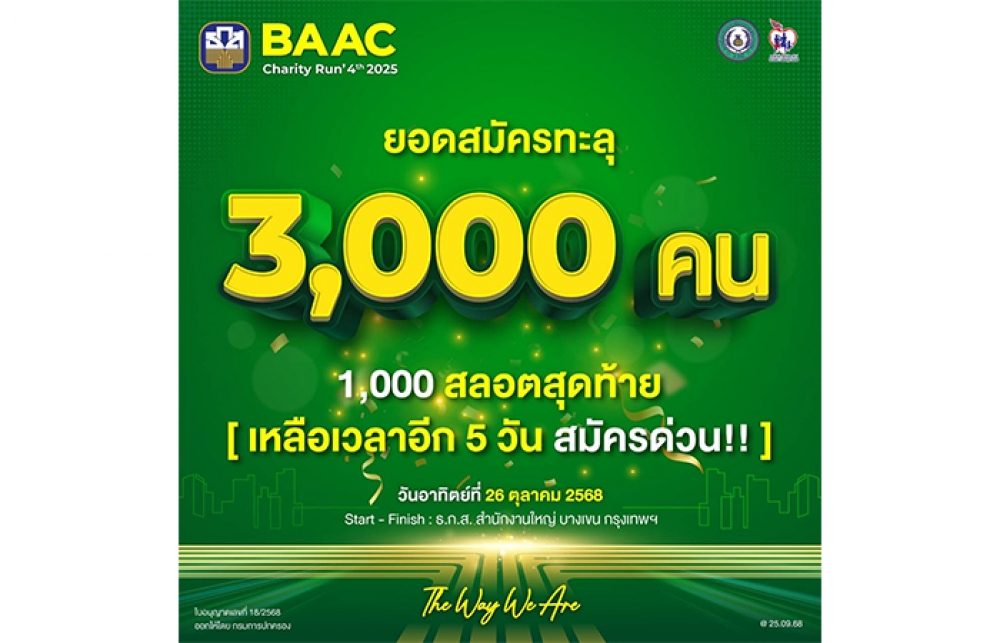 “BAAC Charity Run 2025” มีนักวิ่งสมัครเกิน 3,000 คนแล้ว!!