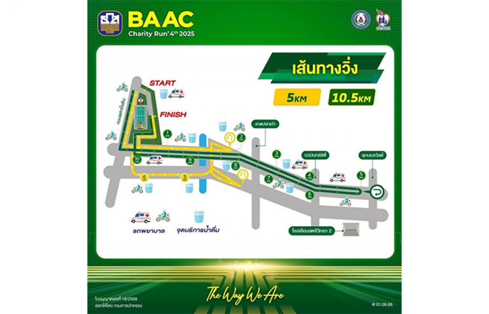 ธนาคารเพื่อการเกษตรและสหกรณ์การเกษตร(ธ.ก.ส.) ชวนทุกท่านสมัครเข้าร่วมงานวิ่งครั้งใหญ่แห่งปี BAAC Charity Run 4th 2025 ซึ่งจัดขึ้นเป็นครั้งที่ 4 โดยสมาคมสโมสรพนักงานธนาคารเพื่อการเกษตรและสหกรณ์การเกษตร(ส.ธกส.) ในวันอาทิตย์ที่ 26 ตุลาคม 2568 จุด Start และ Finish ที่ ธ.ก.ส. สำนักงานใหญ่ บางเขน กรุงเทพฯ และวิ่งบนเส้นทางถนนพหลโยธิน - ถนนประเสริฐมนูกิจ โดยหลังจากเปิดรับสมัครตั้งแต่วันที่ 1 กันยายน 2568 ล่าสุด ณ วันที่ 26 กันยายน 2568 มีนักวิ่งทั้งชาวไทยและชาวต่างชาติสมัครเข้าร่วมงานวิ่งสุดมันส์ รางวัลสุดยิ่งใหญ่แล้วมากกว่า 3,000 รายแล้ว!! แบ่งการสมัครออกเป็น 2 ระยะ ได้แก่ ระยะ Fun Run 5 กิโลเมตร และระยะ Mini Marathon 10.5 กิโลเมตร ค่าสมัครเพียง 600 บาท และ VIP ค่าสมัคร 1,000 บาท ผู้สมัครยังได้รับของที่ระลึก เสื้อวิ่ง BIB กระเป๋า Shopping bag และรับเหรียญรางวัลทันทีเมื่อเข้าเส้นชัยภายในระยะเวลาที่กำหนด พิเศษ!! เหรียญรางวัลปีนี้ถูกออกแบบมาให้สามารถเชื่อมต่อกับเหรียญรางวัลของงาน BAAC Charity Run ปี 2023 และ 2024 ได้อีกด้วย ทั้งนี้ รายได้จากค่าสมัครทั้งหมดจะนำไปมอบเป็นทุนการศึกษาให้แก่ทายาทของเกษตรกร