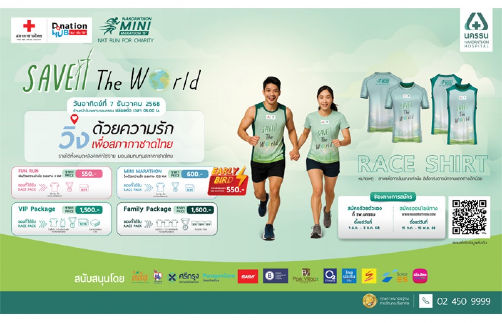 นิวส์ คอนเน็คท์ - บมจ.โรงพยาบาลนครธน หรือ NKT เตรียมจัด นักวิ่งนครธนมินิมาราธอน ครั้งที่ 15 ภายใต้คอนเซ็ปต์ “Save the World” วิ่งด้วยความรัก เพื่อสภากาชาดไทย พร้อมใส่ใจสิ่งแวดล้อมแบบครบสูตร ไม่ว่าจะเป็น เสื้อวิ่ง เหรียญ โล่ ของที่ระลึก ที่ทำจากวัสดุ Upcycle ช่วย Reduce ลดการใช้น้ำ พลังงาน และลดการปล่อย CO2 จากกระบวนการผลิต แถมยังสามารถ Reuse เหรียญเป็นที่รองแก้ว ได้อีก งานนี้ รายได้หลังหักค่าใช้จ่ายจะสมทบ โครงการเงินทุนฉุกเฉินเพื่อช่วยเหลือผู้ประสบภัยพิบัติ สภากาชาดไทย เพราะหลายภัยพิบัติสัมพันธ์กับปัญหาสิ่งแวดล้อมโดยตรง