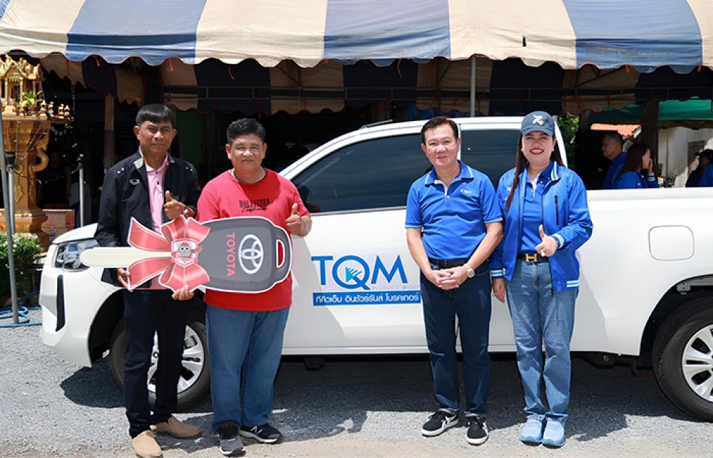 สำหรับกิจกรรมในครั้งนี้ TQM ได้เตรียมของรางวัลสุดพิเศษ พร้อมยกขบวนส่งมอบรางวัลถึงหน้าบ้าน เพื่อเป็นการตอบแทนทั้งตัวแทนและลูกค้า โดยมอบรางวัลใหญ่ รถยนต์กระบะ Toyota Hilux REVO Smart Cab Z Edition มูลค่า 662,000 บาท และรถจักรยานยนต์ Honda Wave รุ่น 110 มูลค่า 47,500 บาท ลูกค้าผู้โชคดีที่ได้รับรางวัลรถกระบะ ได้แก่ คุณ อนันต์ เกษประทุม จาก ตำบลหนองขาม อำเภอหนองหญ้าไซ จังหวัดสุพรรณบุรี นอกจากนี้ยังมีรางวัลอื่น ๆ อีกมากมายที่มอบให้กับลูกค้าและตัวแทนจุดบริการสมาชิกพันธมิตร รวมมูลค่ากว่า 1,000,000 บาท