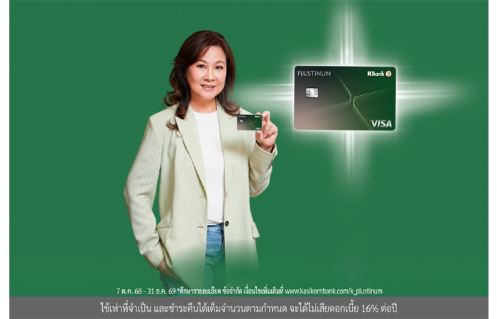 สำหรับลูกค้าใหม่ยังสามารถพลัสความพิเศษไปได้อีก เมื่อสมัครบัตรเครดิต KBank PLUSTINUM รับคะแนน K Point เพิ่มอีก 3,000 คะแนน รวมรับ K Point สูงสุด 268,000 คะแนน และสามารถนำคะแนน K Point ไปเลือกแลกของแบรนด์ดังคุณภาพดี มูลค่าสูงสุด 39,900 บาท ตั้งแต่วันที่ 7 ต.ค. – 31 ธ.ค. 2568