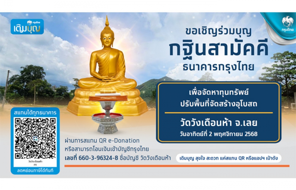 กรุงไทย เชิญชวนร่วมบุญมหากุศล “กฐินสามัคคีธนาคารกรุงไทย”