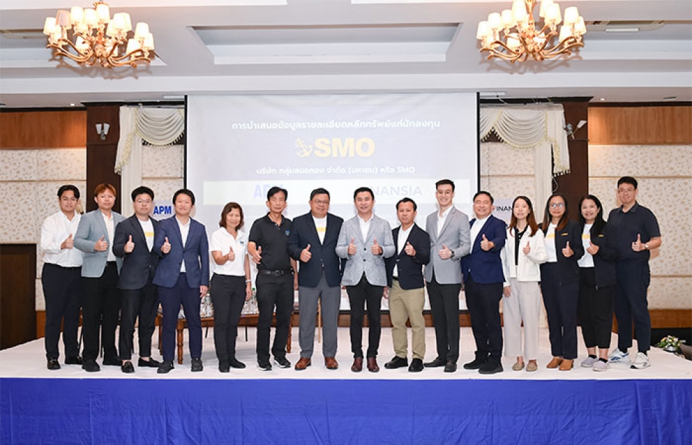นายกิตติพงษ์ พวงมาลา ประธานเจ้าหน้าที่บริหาร นายกุศล ศรีเปารยะ ประธานเจ้าหน้าที่บริหารการเงิน นายศักดา ทองรอง รองกรรมการผู้จัดการอาวุโส สายงานสำนักงาน บริษัท กลุ่มสมอทอง จำกัด (มหาชน) หรือ SMO หนึ่งในผู้นำในการผลิตและจำหน่ายน้ำมันปาล์มดิบของประเทศไทย ซึ่งมีโรงงาน 4 จุดครอบคลุมพื้นที่ยุทธศาสตร์สำคัญของปาล์มน้ำมัน และธุรกิจผลิตและจำหน่ายไฟฟ้าจากเชื้อเพลิงก๊าซชีวภาพ พร้อมด้วยดร.สมภพ ศักดิ์พันธ์พนม ประธานกรรมการ นายสุริยา ธรรมธีระ รองกรรมการผู้จัดการ บริษัท แอสเซท โปร แมเนจเม้นท์ จำกัด (APM) ในฐานะที่ปรึกษาทางการเงินและนายภควัฒน์ ตุลยนิติกุล ผู้อำนวยการอาวุโส บริษัทหลักทรัพย์ ฟินันเซียไซรัส จำกัด (มหาชน) ในฐานะแกนนำการจัดจำหน่ายและรับประกันการจำหน่าย ร่วมนำเสนอข้อมูลธุรกิจ วิสัยทัศน์ ข้อมูลทางการเงิน และศักยภาพการเติบโตของบริษัท ให้แก่นักลงทุนในจังหวัดราชบุรี โดยมีนักลงทุนให้ความสนใจเข้าร่วมรับฟังข้อมูลเป็นจำนวนมาก ณ ห้องประชุมกัลปพฤกษ์ ชั้น 2 โรงแรมเวสเทิร์นแกรนด์ราชบุรี จ.ราชบุรี