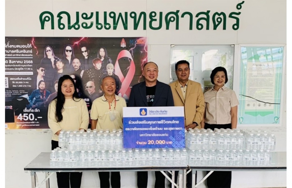 รศ.นพ.ธรรศ สงวนศักดิ์ รองคณบดีฝ่ายวิเทศสัมพันธ์และสื่อสารองค์กร คณะแพทยศาสตร์ มหาวิทยาลัยขอนแก่น รับมอบเงินสนับสนุน จำนวน 20,000 บาท พร้อมน้ำดื่ม จาก บริษัท วิริยะประกันภัย จำกัด (มหาชน) โดยมี นายเอกชัย สวนเกษ ผู้จัดการศูนย์ปฏิบัติการสินไหมทดแทนขอนแก่น เป็นผู้แทนมอบ ภายใต้โครงการ “Hope for Health 2” เพื่อสนับสนุนบริการตรวจคัดกรองโรคมะเร็งเต้านม และการตรวจสุขภาพตาสำหรับประชาชน โดยเฉพาะกลุ่มเสี่ยงที่อาจขาดโอกาสในการเข้าถึงบริการทางการแพทย์ ซึ่งการสนับสนุนงบประมาณในครั้งนี้ มีส่วนสำคัญในการป้องกันและลดความรุนแรงของโรคร้าย สร้างความตระหนักรู้ด้านการดูแลสุขภาพ ตลอดจนเสริมสร้างคุณภาพชีวิตที่ดีให้กับประชาชนในพื้นที่ต่อไป ณ มหาวิทยาลัยขอนแก่น ต.ในเมือง อ.เมืองฯ จ.ขอนแก่น
