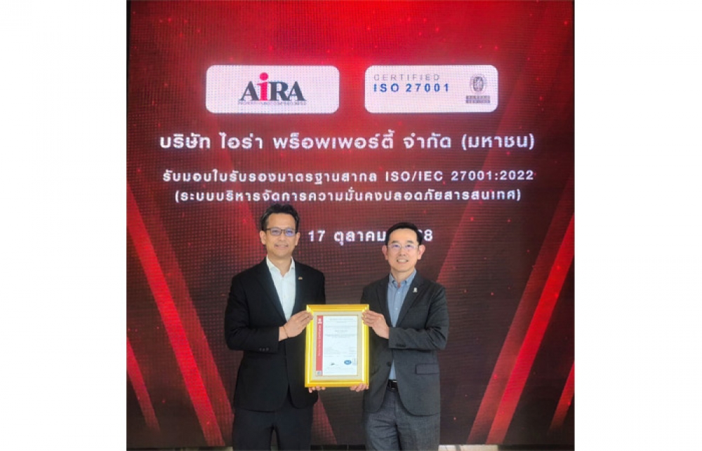 “ไอร่า พร็อพเพอร์ตี้” คว้ามาตรฐาน ISO/IEC 27001