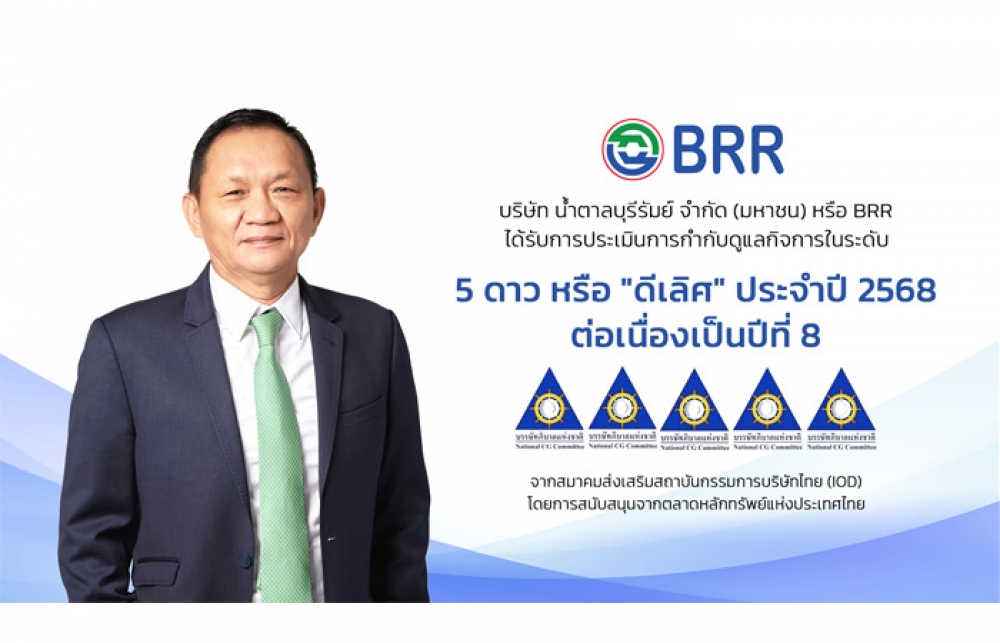 BRR รับคะแนนการประเมินการกำกับดูแลกิจการระดับ 5 ดาว