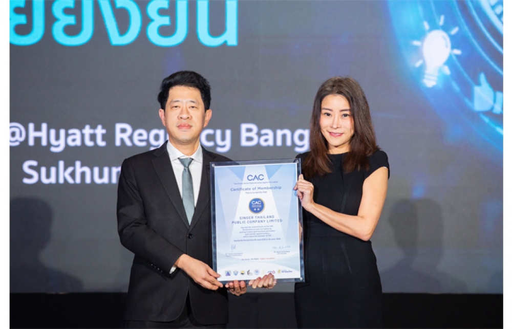SINGER ได้รับการรับรอง CAC ร่วมต่อต้านคอร์รัปชันทุกรูปแบบ
