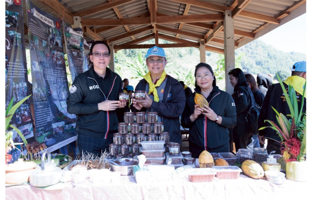 ทั้งนี้ ปีนี้เป็นครั้งแรกที่เกษตรกรห้วยน้ำเพี้ยสามารถเก็บเกี่ยวผลผลิตโกโก้มาแปรรูปและจำหน่ายได้ ถือเป็นความสำเร็จของความร่วมมือระหว่างชุมชน จุฬาลงกรณ์มหาวิทยาลัย และหน่วยงานภาครัฐและภาคเอกชน รวมทั้ง EXIM BANK ในการแก้ปัญหาความแห้งแล้งบนพื้นที่สูง ผ่านการสนับสนุนด้านทรัพยากร องค์ความรู้ และโครงสร้างพื้นฐานเพื่อผลิตและใช้พลังงานสะอาด โดยเฉพาะการติดตั้งแผงโซลาร์เซลล์ปลดระวางจากภาคอุตสาหกรรมไปใช้ผลิตไฟฟ้าสำหรับผันน้ำขึ้นที่สูง ส่งเสริมการปลูกพืชเศรษฐกิจทดแทนการปลูกข้าวโพด ลดการเผาและบุกรุกป่า ลดการใช้สารเคมี และสร้างระบบเกษตรยั่งยืนควบคู่กับการฟื้นฟูป่า เสริมสร้างความเข้มแข็งของชุมชนอย่างแท้จริงและยั่งยืน ณ บ้านเชตวัน ตำบลสันทะ อำเภอนาน้อย จังหวัดน่าน เมื่อวันที่ 2 ธันวาคม 2568