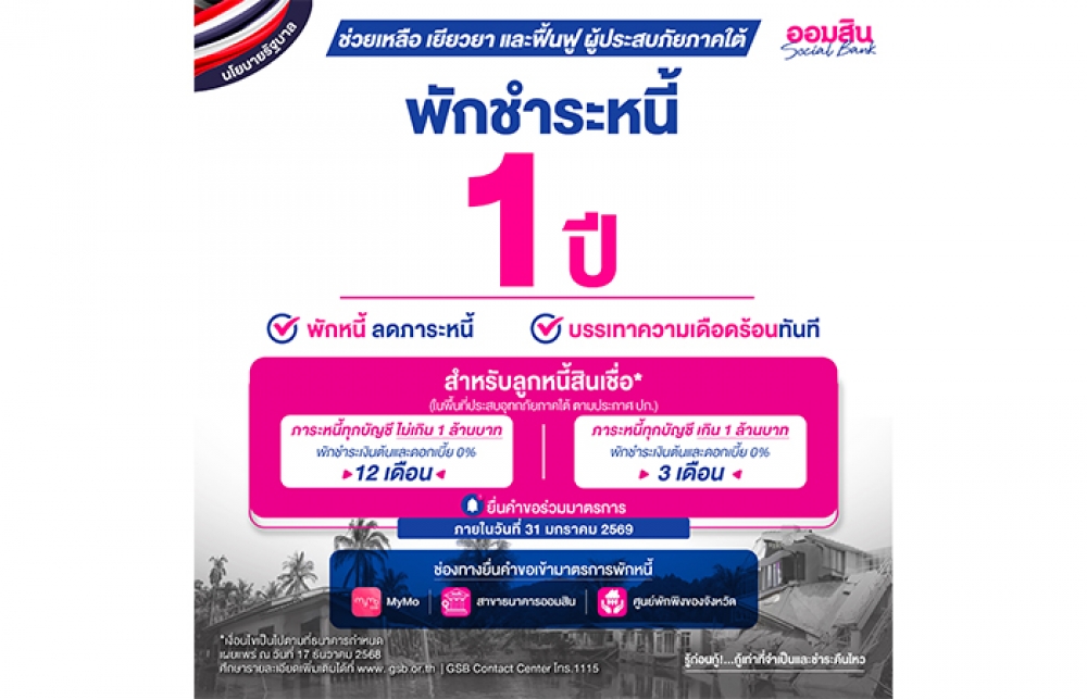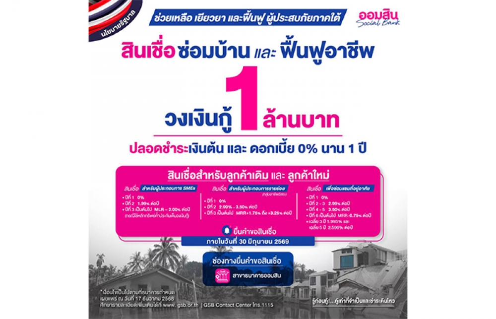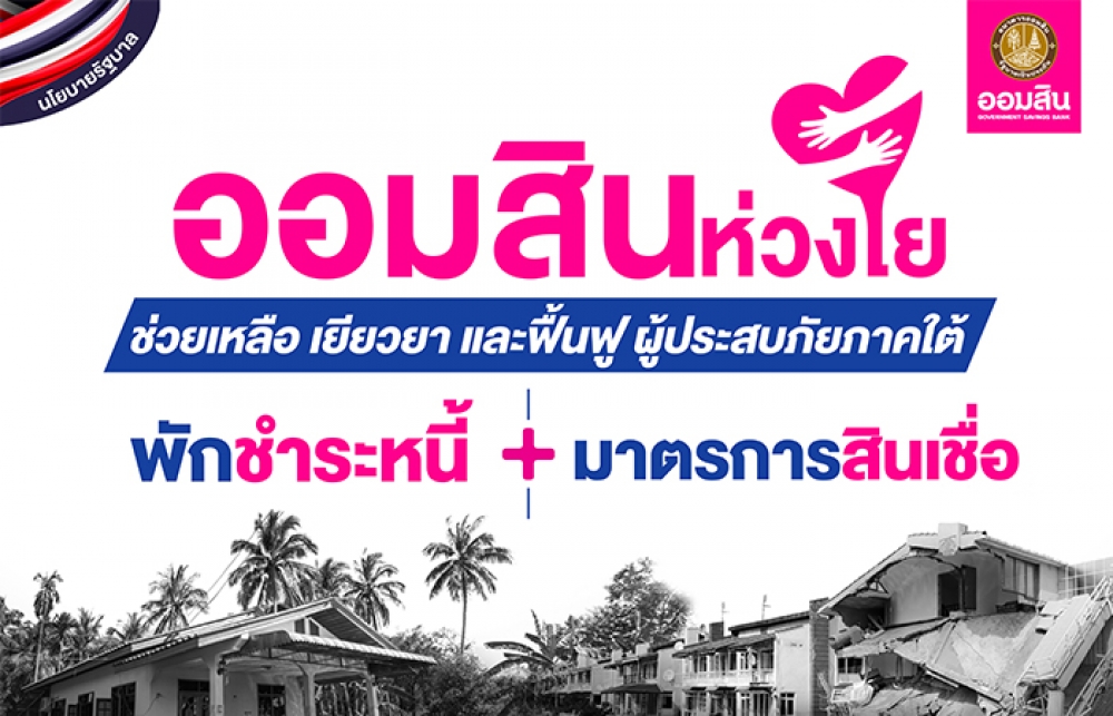 ออมสิน ออกมาตรการช่วยผู้ประสบภัยใต้