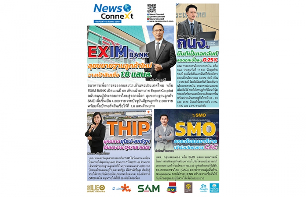 EXIM BANK วางเป้าสินเชื่อ 1.8 แสนล. - THIP บุกตลาดยุโรป-สหรัฐฯ ดันผลงาน Q4/68 สดใส