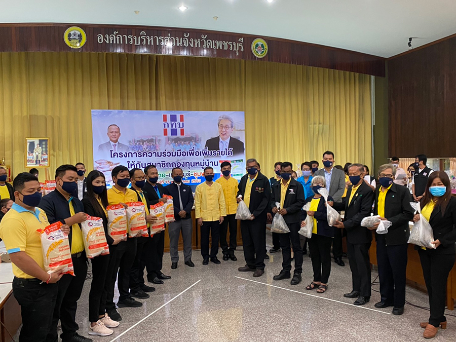 นายรักษ์พงษ์ เซ่งเจริญ ผู้อำนวยการสำนักงานกองทุนหมู่บ้านและชุมชนเมืองแห่งชาติ (สทบ.) ร่วมกับสมาชิกกองทุนหมู่บ้าน 3 จังหวัด คือ หนองคาย เพชรบุรี ชุมพร ขับเคลื่อนนโยบายสร้างรายได้ ลดรายจ่ายครัวเรือน นำข้าวแลกปลาซึ่งเป็นสินค้าที่ผลิตได้ในเเต่ละชุมชน จากนั้นลงพื้นที่กองทุนหมู่บ้านหาดเจ้าสำราญนอก หมู่ที่ 1 ตำบลหาดเจ้าสำราญ อำเภอเมือง จ.เพชรบุรี ร่วมโครงการ "ความร่วมมือเพื่อเพิ่มรายได้ให้กับสมาชิกกองทุนหมู่บ้าน"