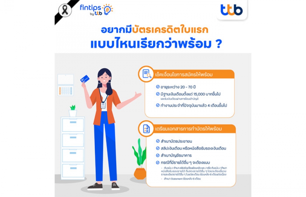 นิวส์คอนเน็คท์ - หลังเรียนจบ หนุ่มสาววัย Gen Z เริ่มต้นใช้ชีวิตวัยทำงานเป็น First Jobber ซึ่งหลายคนย่อมมองหาตัวช่วยด้านการเงินเพื่อวางแผนการใช้ชีวิตได้อย่างอิสระ เพราะรายจ่ายต่าง ๆ ไม่ว่าจะค่าที่พัก ค่าเดินทาง ค่ากินอยู่ในแต่ละวัน รวมไปถึงบิลค่าโทรศัพท์รายเดือน แม้กระทั่งค่าใช้จ่ายที่จำเป็นอย่างค่ารักษาพยาบาลที่อาจต้องใช้เมื่อเกิดเหตุฉุกเฉิน บัตรเครดิตจึงกลายเป็นตัวเลือกยอดนิยมของคน Gen Z ที่ต้องการบริหารรายจ่ายให้คล่องตัวขึ้น ทั้งช่วยผ่อนชำระโดยไม่ต้องใช้เงินก้อน และยังได้รับคะแนนสะสมหรือเงินคืนหากใช้ให้ถูกวิธี แต่เมื่อมีประเภทบัตรเครดิตให้เลือกมากมาย คำถามคือจะรู้ได้อย่างไรว่าบัตรใบไหนเหมาะกับไลฟ์สไตล์ของเรา วันนี้ fintips by ttb #เรื่องเงินที่รู้จริงแบบเพื่อนที่รู้ใจ จะพา First Jobber ไปเตรียมพร้อมก่อนทำบัตรเครดิตใบแรก เพื่อช่วยสร้างพื้นฐานทางการเงินที่มั่นคงตั้งแต่ก้าวแรกของการทำงาน