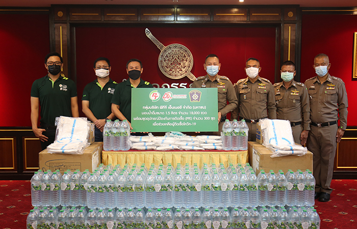 นายสุวัชชัย พิทักษ์วงศาภรณ์ (ที่ 3 จากซ้าย) กรรมการผู้จัดการ บริษัท แอตลาส เอ็นเนอยี จำกัด ในกลุ่ม บริษัท พีทีจีเอ็นเนอยี จำกัด (มหาชน) มอบน้ำดื่มบรรจุขวดขนาด 1.5 ลิตร จำนวน 18,000 ขวด และชุดอุปกรณ์ป้องกันการติดเชื้อ (PPE) จำนวน 300 ชุด ให้แก่โรงพยาบาลสนามในพื้นที่ตำรวจภูธรภาค 8 เพื่อเป็นส่วนหนึ่งในการช่วยเหลือผู้ติดเชื้อโควิด-19 โดยมี พลตำรวจโท กิตติ์รัฐ พันธุ์เพ็ชร์ (ที่ 4 จากขวา) ผู้บัญชาการตำรวจภูธรภาค 8 เป็นผู้รับมอบ ณ กองบัญชาการตำรวจภูธรภาค 8 จ.ภูเก็ต เมื่อเร็วๆ นี้