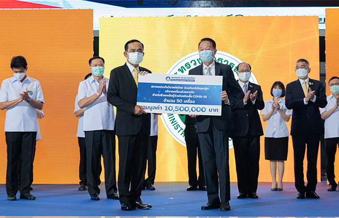 นายอานนท์ วังวสุ นายกสมาคมประกันวินาศภัยไทย ส่งมอบเครื่องช่วยหายใจ จำนวน 50 ชุด รวมมูลค่า 10,500,000 บาท ให้กับโรงพยาบาลบุษราคัม เพื่อใช้ในการดูแลผู้ป่วย COVID-19 ซึ่งสมาคมฯ ร่วมกับบริษัทสมาชิกบริจาคในโครงการ “ธุรกิจประกันวินาศภัยไทย ร่วมใจช่วยชาติฝ่าวิกฤติ COVID-19” โดยมี พลเอก ประยุทธ์ จันทร์โอชา นายกรัฐมนตรี เป็นผู้รับมอบ พร้อมด้วย นายอนุทิน ชาญวีรกูล รองนายกรัฐมนตรีและรัฐมนตรีว่าการกระทรวงสาธารณสุข ร่วมเป็นสักขีพยาน ในพิธีเปิดโรงพยาบาลบุษราคัม ณ อาคารชาเลนเจอร์ อิมแพ็ค เมืองทองธานี จังหวัดนนทบุรี