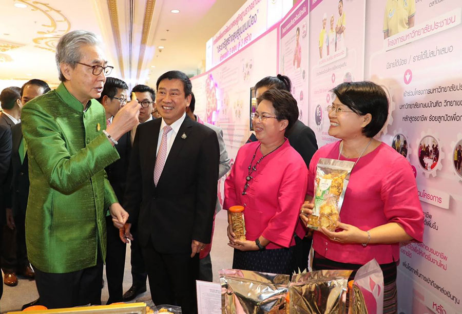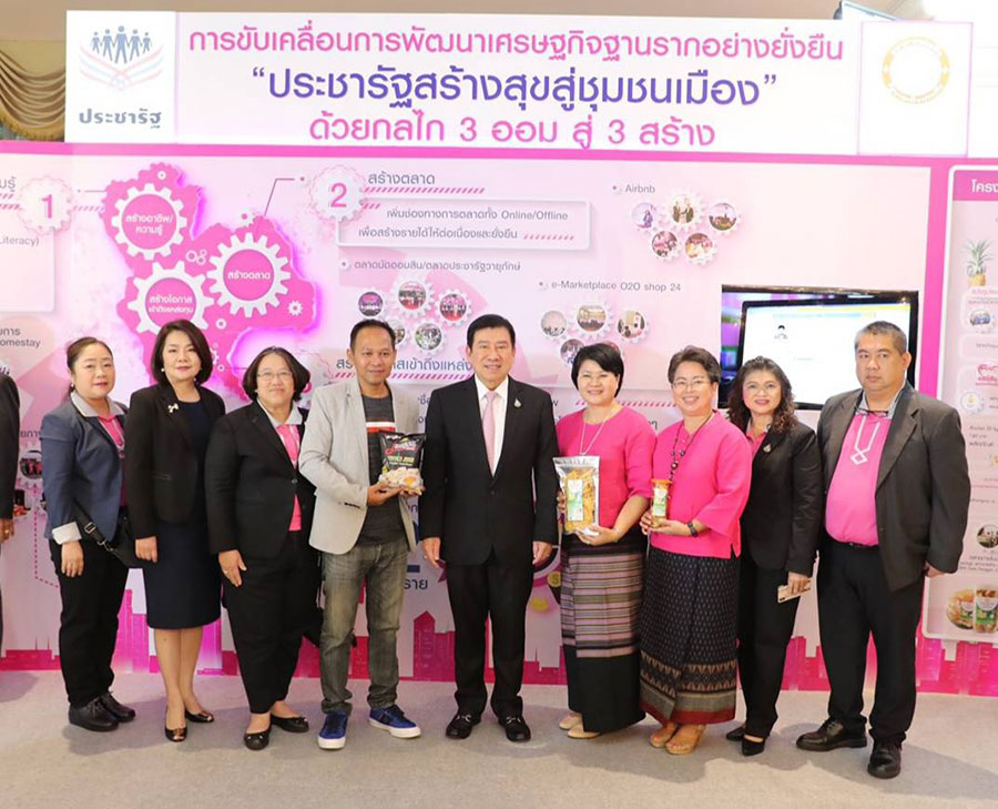 โดยในส่วนของธนาคารออมสิน ได้นำเสนอโครงการประชารัฐสร้างสุขสู่ชุมชนเมือง ประกอบด้วย ยุทธศาสตร์ 3 สร้าง คือ การสร้างอาชีพ/ความรู้ สร้างตลาด/รายได้ และสร้างโอกาสเข้าถึงแหล่งทุน ซึ่งการสร้างอาชีพธนาคารได้จัดตั้งศูนย์ยกระดับเศรษฐกิจฐานรากเพื่อความยั่งยืนจำนวน 100 แห่ง โดยให้ความรู้เกี่ยวกับการฝึกอาชีพ, การดูแลผู้ป่วย ผู้สูงวัย และการจัดการธุรกิจท่องเที่ยวชุมชน เป็นต้น ส่วนการสร้างรายได้ ได้มีการส่งเสริมช่องทางการขาย ผ่านตลาดออนไลน์และออฟไลน์ เพื่ออำนวยความสะดวกและให้ชุมชนสามารถเข้าถึงตลาดมากขึ้น นอกจากนี้ธนาคารได้ออกสินเชื่อต่างๆ เพื่อสร้างโอกาสเข้าถึงแหล่งเงินทุน ได้แก่ สินเชื่อหาบเร่แผงลอย 4.0 สินเชื่อผู้ใช้แรงงาน สินเชื่อสตรีทฟู้ด และสินเชื่อโอทอปและวิสาหกิจชุมชน ทั้งนี้เพื่อขับเคลื่อนเศรษฐกิจฐานรากให้เติบโตอย่างเข้มแข็งและยั่งยืนตามนโยบายของรัฐบาล