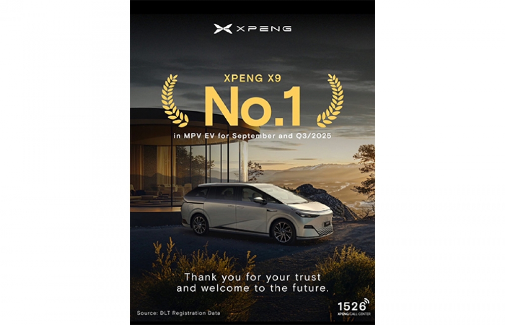 นิวส์ คอนเน็คท์ - MGC-ASIA รับข่าวดี ยอดจดทะเบียน “XPENG รุ่น X9” ทะลุเป้า หนุนไตรมาส 3/2568 คว้ายอดจดทะเบียนอันดับ 1 ขึ้นแท่นผู้นำตลาดยานยนต์ไฟฟ้า MPV ในประเทศไทย พร้อมขับเคลื่อน EV อย่างยั่งยืนสู่อนาคต