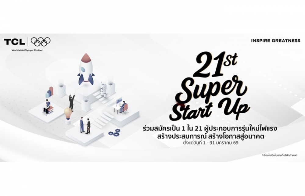 “Super Start Up” เปิดพื้นที่สนับสนุนผู้ประกอบการรุ่นใหม่ไฟแรง ด้วยการเปิดรับสมัครผู้ที่สนใจเข้าร่วมเป็น 1 ใน 21 ผู้ประกอบการรุ่นใหม่ ที่มีนวัตกรรมและความคิดสร้างสรรค์ สร้างประสบการณ์ และโอกาสทางธุรกิจร่วมกับ TCL เริ่ม ตั้งแต่วันที่ 1 – 31 ม.ค. 2569