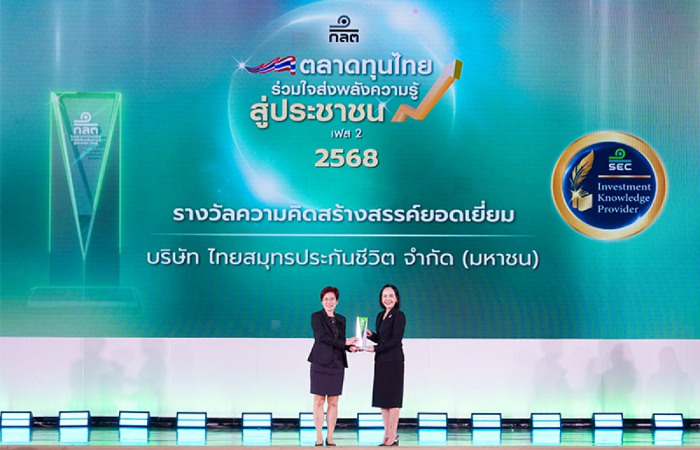 OCEAN LIFE ไทยสมุทรประกันชีวิต โดย คุณสุวรรณ อุดมเฉลิมเดช Deputy Chief Executive Officer and Acting Chief Investment Officer (CIO) ร้บรางวัล “ความคิดสร้างสรรค์ยอดเยี่ยม” (Creativity Award) จาก สำนักงานคณะกรรมการกำกับหลักทรัพย์และตลาดหลักทรัพย์ (สำนักงาน ก.ล.ต.) ในโครงการ “ตลาดทุนไทยร่วมใจส่งพลังความรู้ สู่ประชาชน เฟส 2 ปี 2568 ซึ่งเป็นรางวัลสำหรับผู้ประกอบธุรกิจที่มีการให้ความรู้การเงินการลงทุนที่สามารถทำให้คนจดจำได้ง่าย นำไปสู่การช่วยให้เกิดการปรับเปลี่ยนพฤติกรรมของกลุ่มเป้าหมาย และ/หรือ มีการประยุกต์ใช้เทคโนโลยีมาประกอบการให้ความรู้ได้อย่างสร้างสรรค์ ซึ่งสามารถนำไปปฏิบัติให้เกิดผลต่อกลุ่มเป้าหมายอย่างเป็นรูปธรรม