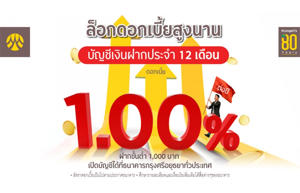 กรุงศรี คลอดบัญชีเงินฝากประจำ 12 เดือน ล็อกดอกเบี้ยสูง