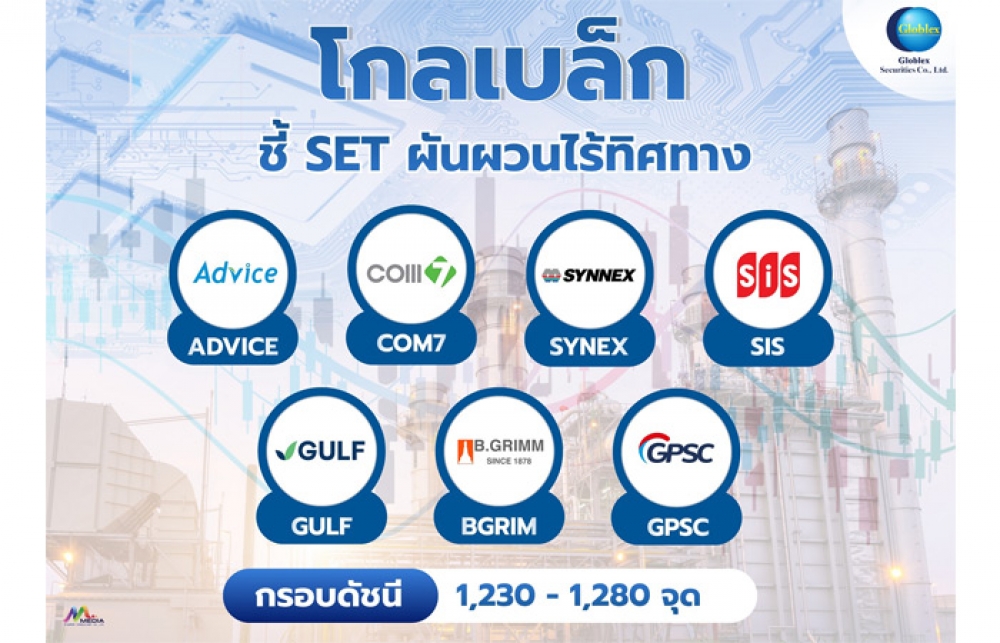 นิวส์ คอนเน็คท์ - GBS ประเมินดัชนี SET สัปดาห์นี้ยังผันผวนไร้ทิศทาง ขาดปัจจัยบวกใหม่ๆ คาดดัชนีเคลื่อนไหวในกรอบ 1,230–1,280 จุด โดยแนะนำหุ้นเด่นที่ได้ประโยชน์จากเงินบาทแข็งค่า ได้แก่ ADVICE, COM7, SYNEX, SIS, GULF, BGRIM และ GPSC