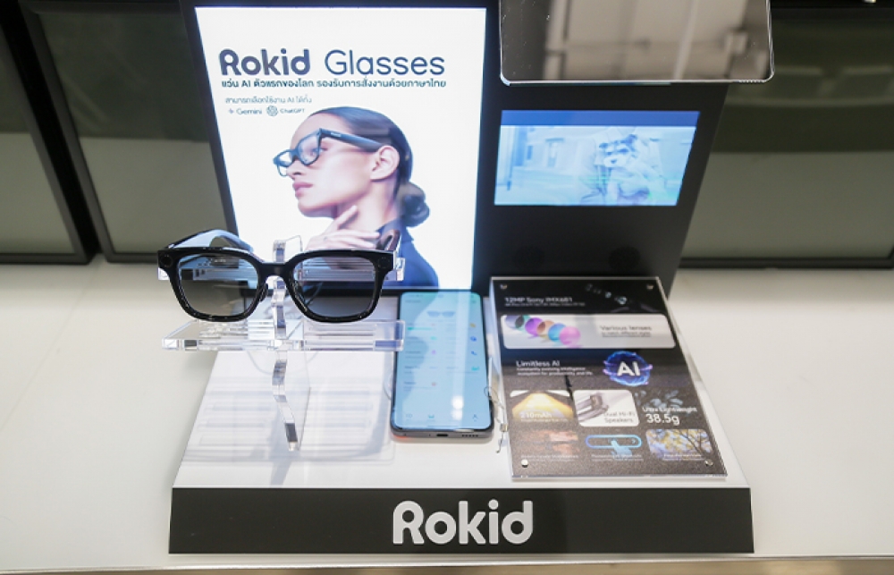โดย ROKID AI Glasses นิยามใหม่ของแว่น AI โดยเน้นการใช้งานที่ง่าย และสวมใส่ได้จริงในชีวิตประจำวัน พร้อมฟีเจอร์เด่น ได้แก่ ระบบ AI แปลภาษาเรียลไทม์ รองรับ 89 ภาษา แสดงซับไตเติ้ลบนเลนส์ขณะสนทนาได้ทันที, AI Assistant สั่งงานด้วยเสียง ขับเคลื่อนด้วย ChatGPT หรือ Google Gemini สามารถเลือกใช้งานได้ และชิป Qualcomm Snapdragon AR1 Gen 1, กล้อง 12 MP Sony IMX681 ถ่ายรูป-วิดีโอมุมมอง POV, โหมด Teleprompter เหมาะกับ Content Creator พร้อมจอ Dual-eye Micro-LED มอบประสบการณ์การรับชมบนหน้าจอคมชัดระดับพรีเมียม ตอบโจทย์ทั้งการทำงานและความบันเทิง นอกจากนี้ ROKID AI Glasses ยังรองรับเลนส์สายตาแบบ Clip-on ตอบโจทย์ผู้มีปัญหาทางสายตา สามารถใช้งานได้สะดวก โดยราคาจำหน่ายอยู่ที่ 19,990 บาท