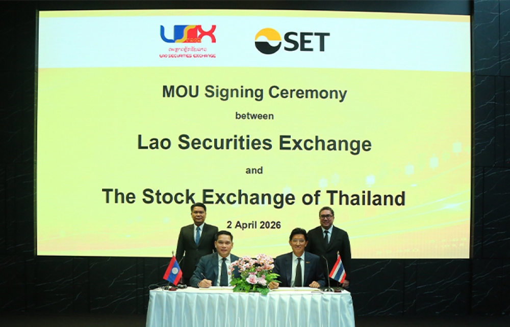 เมื่อวันที่ 2 เมษายน 2569 นายอัสสเดช คงสิริ กรรมการและผู้จัดการ ตลาดหลักทรัพย์แห่งประเทศไทย (ตลท.) เปิดเผยว่า ตลาดหลักทรัพย์แห่งประเทศไทยและตลาดหลักทรัพย์ลาว (Lao Securities Exchange: LSX) ร่วมลงนามบันทึกข้อตกลงความร่วมมือ (MOU) เพื่อส่งเสริมความร่วมมือและความเชื่อมโยงระหว่างตลาดทุนสองประเทศ นับเป็นก้าวสำคัญในการบูรณาการตลาดทุนในระดับภูมิภาค และขยายโอกาสแก่ผู้ลงทุนและผู้ร่วมตลาดในทั้งสองประเทศ ภายใต้ความร่วมมือนี้ ทั้งสองตลาดจะร่วมศึกษาแนวทางเชื่อมโยงระหว่างตลาด รวมถึงสนับสนุนการจดทะเบียนหลักทรัพย์ในทั้งสองตลาด (Dual Listing) เพื่อเพิ่มทางเลือกในการระดมทุนสำหรับบริษัทผู้ออกหลักทรัพย์และการลงทุนสำหรับผู้ลงทุน และเสริมสร้างสภาพคล่องในตลาดทุนทั้งสองแห่ง นอกจากนี้ ยังครอบคลุมการพัฒนาระบบนิเวศทางธุรกิจ ผ่านการสร้างเครือข่าย การจับคู่ธุรกิจ และกิจกรรมส่งเสริมการลงทุน ควบคู่กับความร่วมมือด้านการวิจัย การแลกเปลี่ยนองค์ความรู้ และแนวปฏิบัติด้านการกำกับดูแล รวมถึงการแลกเปลี่ยนบุคลากร เพื่อยกระดับประสิทธิภาพและความโปร่งใสของทั้งสองตลาด