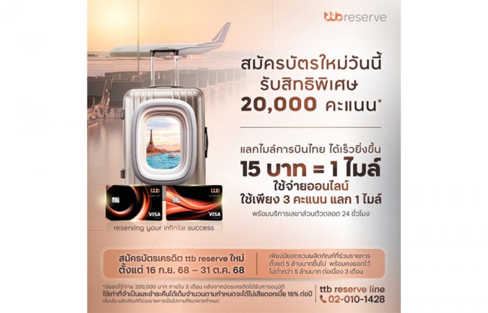 ทีทีบี เปิดตัวโปรโมชันบัตรเครดิต ttb reserve “แลกไมล์เร็วยิ่งขึ้น”
