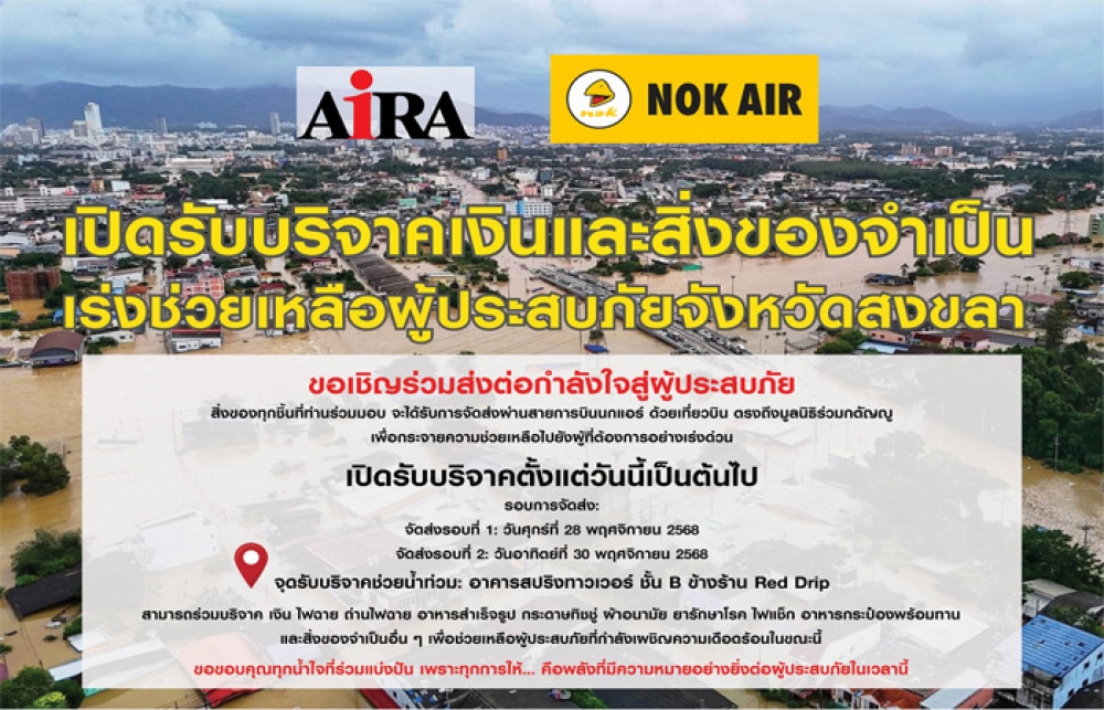 AIRA เปิด 'สปริงทาวเวอร์' รับบริจาค สู้ภัยน้ำท่วมสงขลา