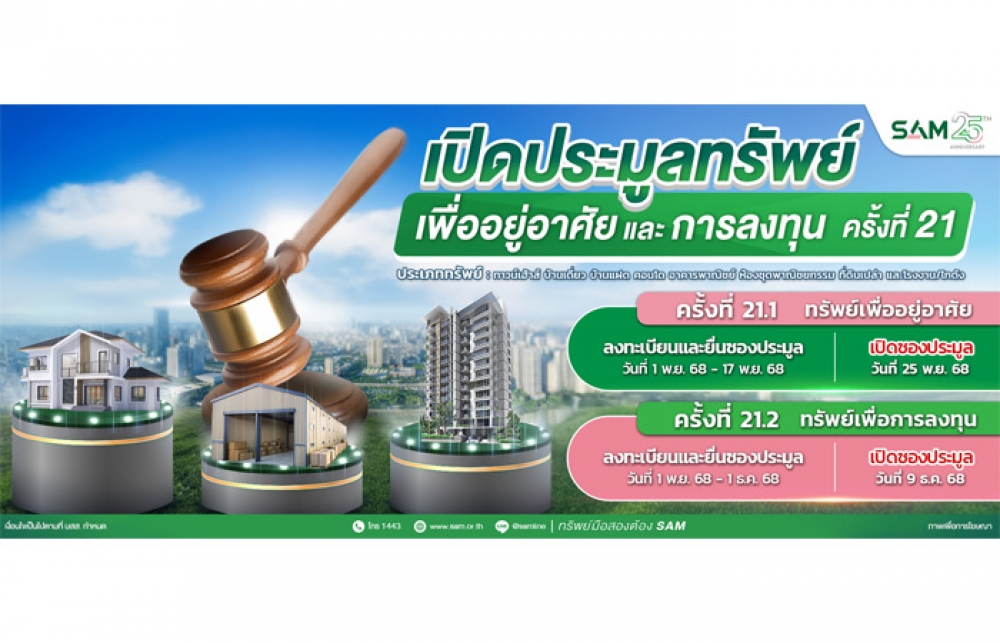 SAM เปิดประมูลครั้งที่ 21 มูลค่ารวมกว่า 157 ลบ.