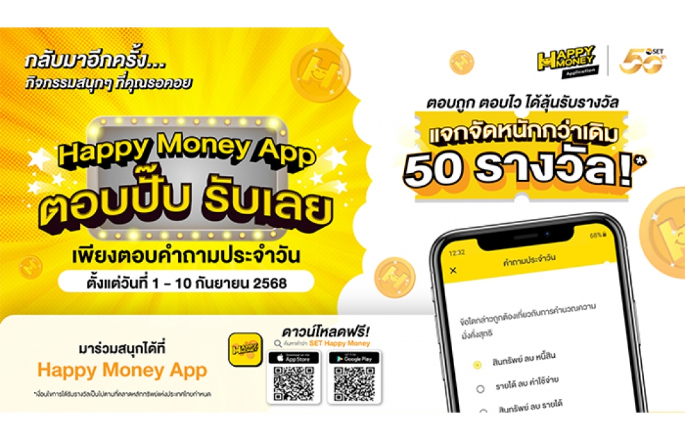 ตลท. ชวนร่วมสนุกตอบคำถาม “Happy Money App ตอบปั๊บ รับเลย”