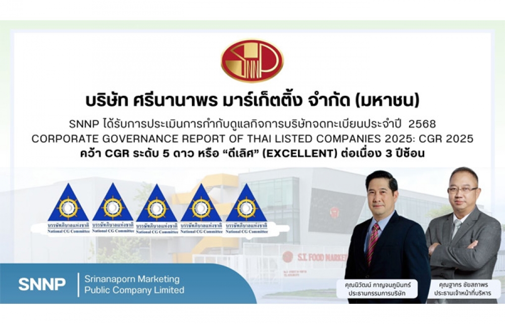 SNNP คว้า CGR “ดีเลิศ” ระดับ 5 ดาว 3 ปีซ้อน