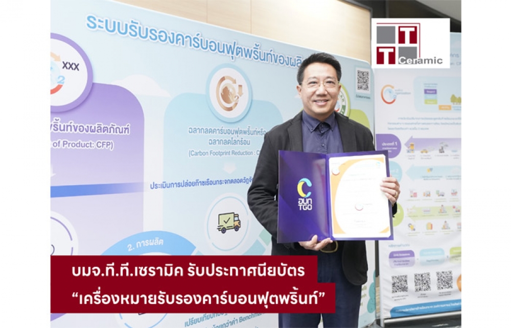ที.ที.เซรามิค รับประกาศนียบัตร “เครื่องหมายรับรองคาร์บอนฟุตพริ้นท์”