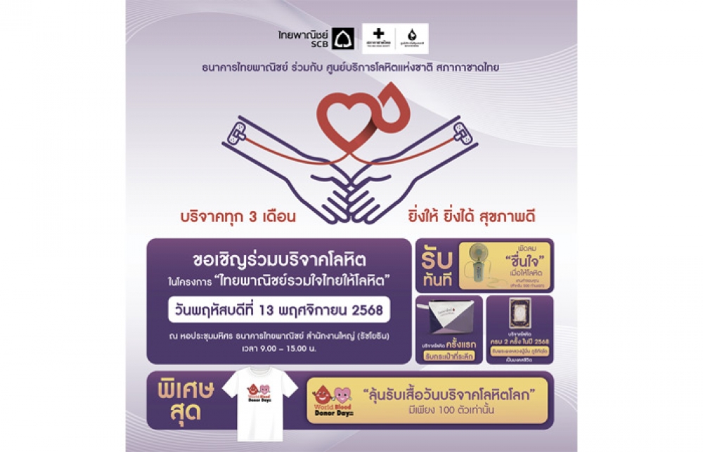 ไทยพาณิชย์ร่วมกับสภากาชาดไทย ขอเชิญร่วมบริจาคโลหิต 13 พ.ย.นี้